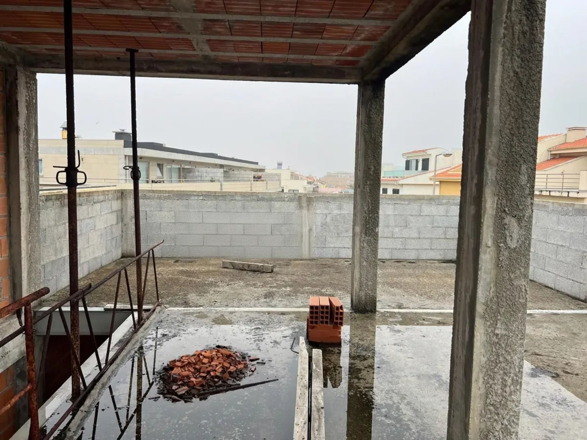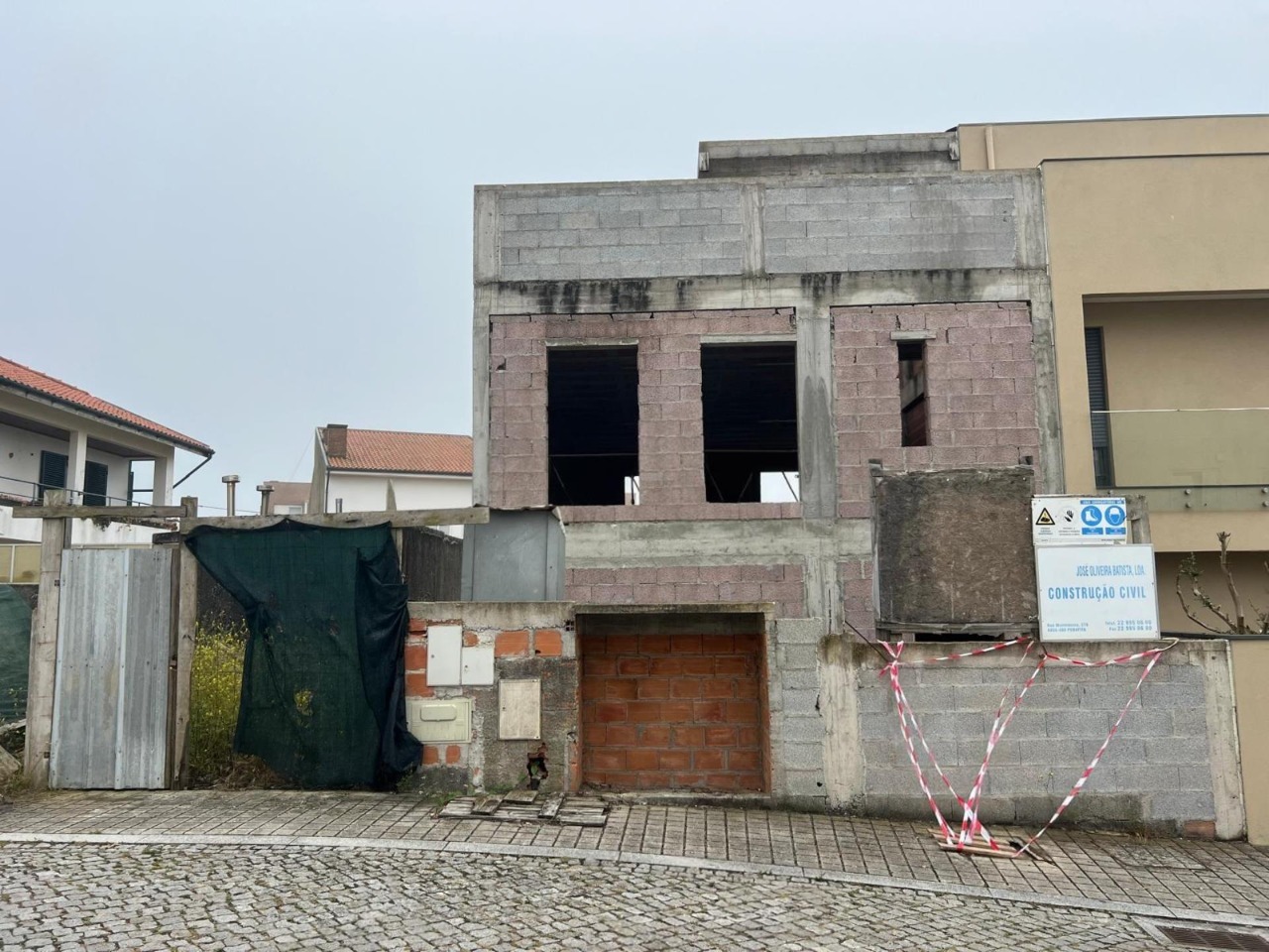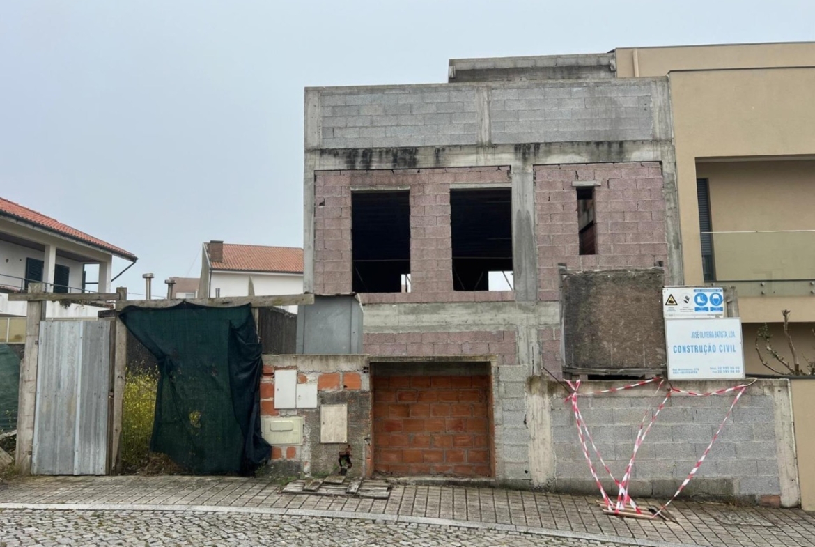 Moradia T3 em fase de estrutura construída em betão e tijolo térmico, de dois pisos e recuado.