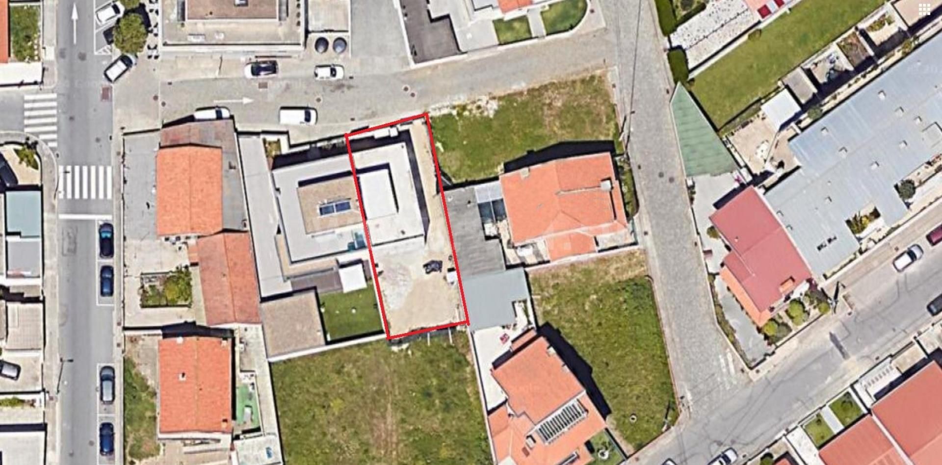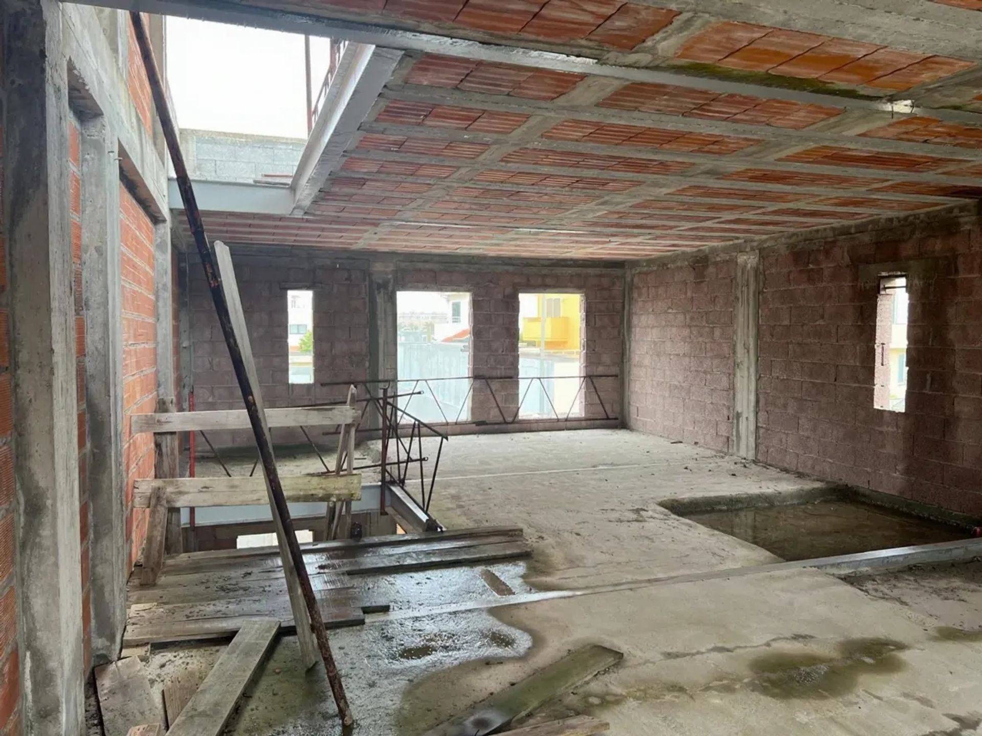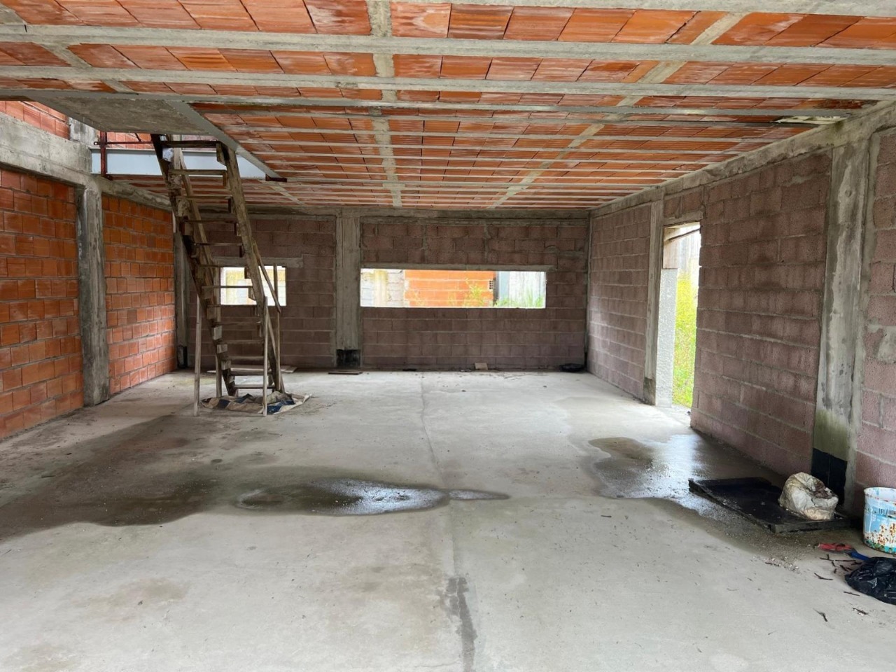 Moradia T3 em fase de estrutura construída em betão e tijolo térmico, de dois pisos e recuado.